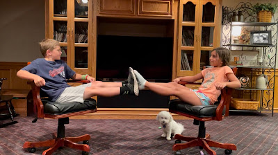 Rosie put together a nice dinner and we even ate in the formal dining room. She ordered fried chicken from the Lariat and made party potatoes (getting the recipe for that one!), corn, and rolls. It was all delicious and very filling. Matthew and Dani were most appreciative of the watermelon. At one point, Tom fed Winston some chicken when Rosie had walked out of the room and Matthew asked loudly “Why are you feeding him your food?” Ooops..I guess he got Uncle Tom in trouble - haha!